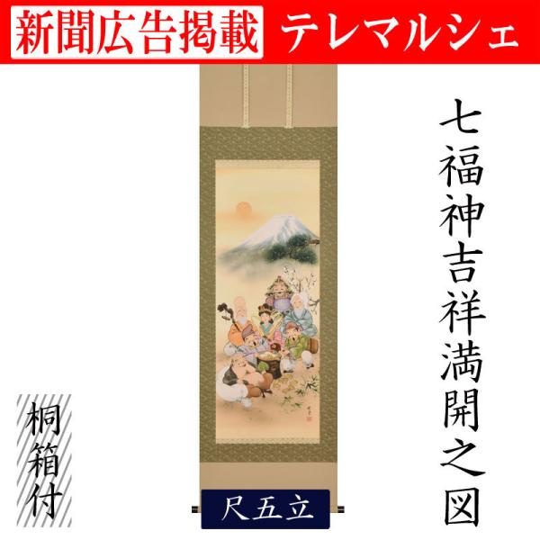 - 美術品・アンティーク・コレクション > 書 > 【真作】掛軸 吉祥書道作品 書道掛軸 日本書道 福運吉祥 共箱入 U36 掛け軸 掛軸 七福神吉祥満開之図 尺五 桐箱付き 床の間 和室 洋室 飾り