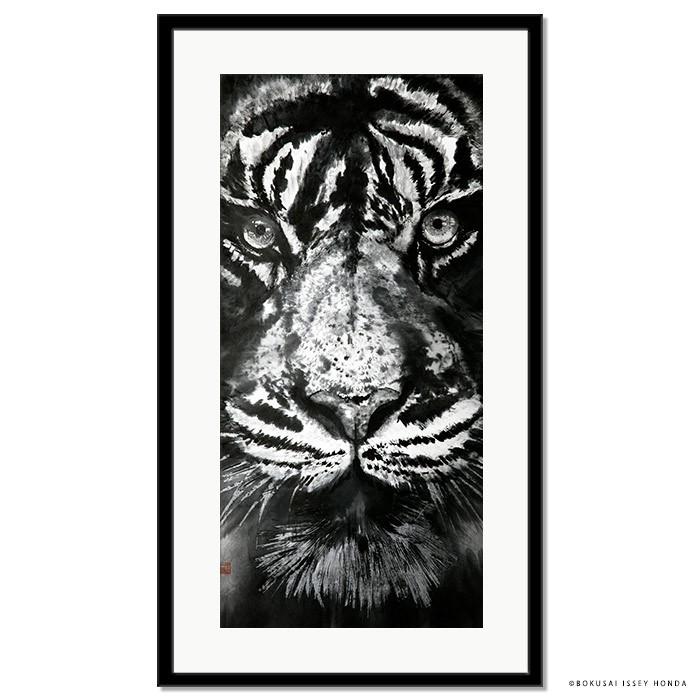 虎 襖画価格変更1枚限定 [限定特価価格] 裏面小紋柄 お飾り画 1枚限定 水墨画 虎「気」トラ 絵画 インテリア 額入り 壁掛け 縦長 モダン 現代
