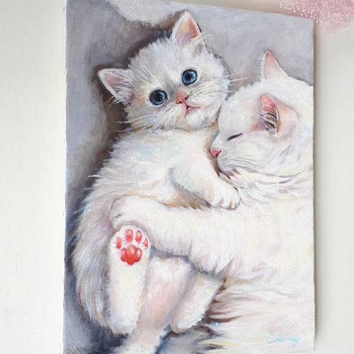 - 美術品・アンティーク・コレクション > 絵画 > 白猫と花の木 F3 キャンバス 油彩画 油絵 絵画 白猫親子 マンチカン 絵画 チェリー Cherry 通販 13462118|Creema
