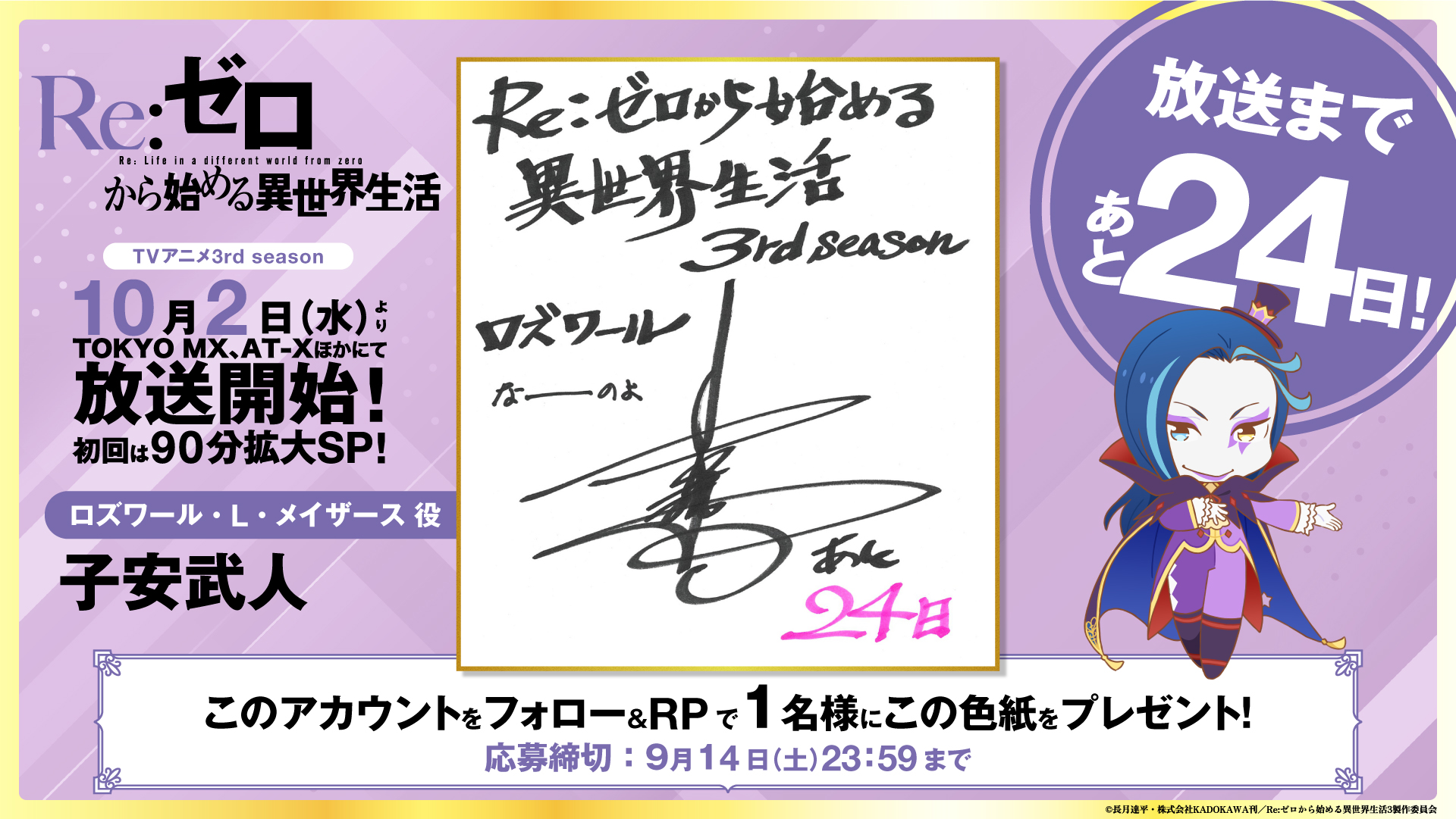 Re:ゼロから始める異世界生活 リゼロ 長月達平 直筆サイン色紙 懸賞 当選品 Re:ゼロから始める異世界生活 リゼロ 長月達平 直筆サイン色紙 懸賞
