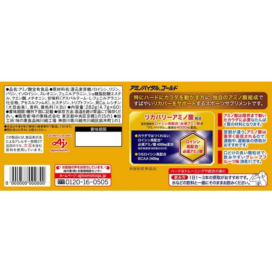 | 商品の特徴 | アミノバイタル 味の素 GOLD 60本入箱 4.7g × 60本 ギフト 父親 誕生日。アミノバイタル アミノバイタルゴールド(アミノバイタルGOLD) 4000。アミノバイタル GOLD | マツキヨココカラオンラインストア。新品アミノバイタルゴールド90本入り発送の際は送料を安くさせたいので箱を開けて別の袋につめて送付いたします。ご納得いただけない方はご購入を控えてください。。アミノバイタル 味の素 GOLD 60本入箱 4.7g × 60本 ギフト 父親 誕生日。ソフトフィットフェイスガード | ||
