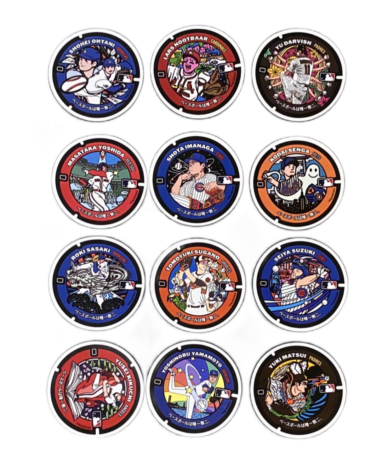 | 商品の特徴 | マンホールステッカー MBL 12枚 コンプリート jal MLB マンホール。JAL 限定 MLB マンホール ステッカー 12枚 コンプリート JAL 限定 MLB。正月特価 12種類コンプリート 【非売品・レア】MLB マンホール。ご覧いただきありがとうございます。最終価格!⭐️12種類コンプリート⭐️【非売品】MLB マンホール。マンホールステッカー MBL 12枚セットです。大谷翔平 2023年アメリカンリーグMVP獲得記念ゴールド(メダル)。コンプリートしています。ドラゴンズ 11 川上憲伸 サイン入りパネル。配布終了してしまいましたので、貴重な品となります。●阪神タイガース90周年限定 人文字 ハッピ ポスター ピンバッジ●3点セット●。ひどいシワや傷などはないと思ってますが、素人のコレクションです。阪神タイガース YANO ウィスキーボトル 2003年モデル。一度人の手に渡ったものですので、完璧を求める方はご遠慮ください。イチロー ニューヨーク・ヤンキース 記念品。バラ売りはしません。大谷翔平50-50達成記念 シルバー 表面に「50 50」 の表記あり。 | ||