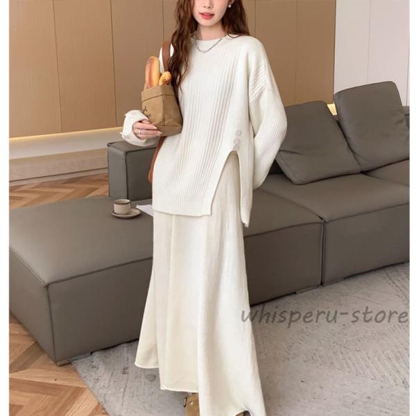 - ゴルフ > レディースウェア > アディダス セットアップ プリーツスカート セーター 長袖 ニット 秋冬 可愛い セットアップ レディース 秋 冬 ニット セーター スカート プリーツ