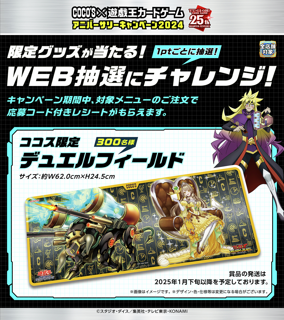 ココス coco's ×遊戯王 限定デュエルフィールド 当選通知書付き ココス × 遊戯王 アニバーサリーキャンペーン2024 限定デュエルフィールド