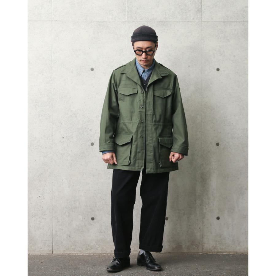 | 商品の特徴 | MILITARY(ミリタリー) 実物 新品 フランス軍 AIR FORCE GENDARME。フランス軍 ビンテージ M-47 フィールドジャケット 前期型初期 新品。フランス軍】「M47フィールドジャケット」の年代別の見分け方やサイズ。フランス軍 M-47 フィールドジャケット サイズ46 | Bon Vieux。仏軍放出品1940年代から50年代にかけてフランス陸軍に配備されていたM-47フィールドジャケット大まかに前期後期に分かれておりこちらは前期モデルのコットンツイル生地後期はHBTになりますエポレット付き襟元にはストームフラップウエストにはドローコード袖口はボタン留め2段のアジャスターベルト正面4ポケットは内側ボタン留めの2重フラップ着用時左胸ポケット裏にARMEEと1953のスタンプが判読できますデッドストック新品未使用品ドローコードを絞った形跡も無くサイズ表記の紙タグも残っています経年劣化以外は特筆するダメージはありません保管時にシワシワが多くついてしまってますがコットンですので扱いは難しくないでしょうデッドストックと言いながらも紙ラベルまで残った個体はなかなか見かけないかと思います表記サイズ:26(2-6)平置き実寸:肩幅48 身幅54 袖丈59 着丈78 くらい | ||