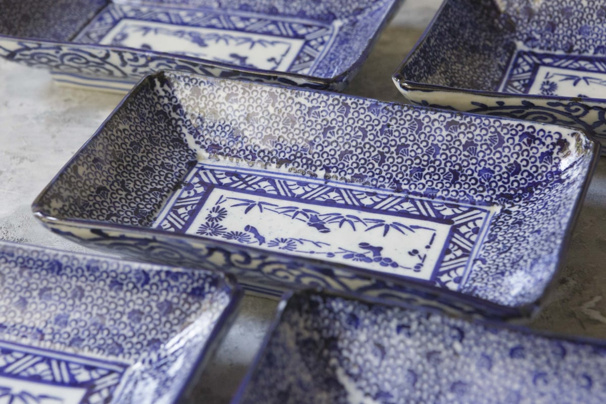 - 美術品・アンティーク・コレクション > 工芸品 > 角皿 角長皿 印判 染付 微塵唐草 明治 大正 ベロ藍 松竹梅 窯傷 角皿 角長皿 印判 染付 微塵唐草 明治 大正 ベロ藍 松竹梅 窯傷 角皿