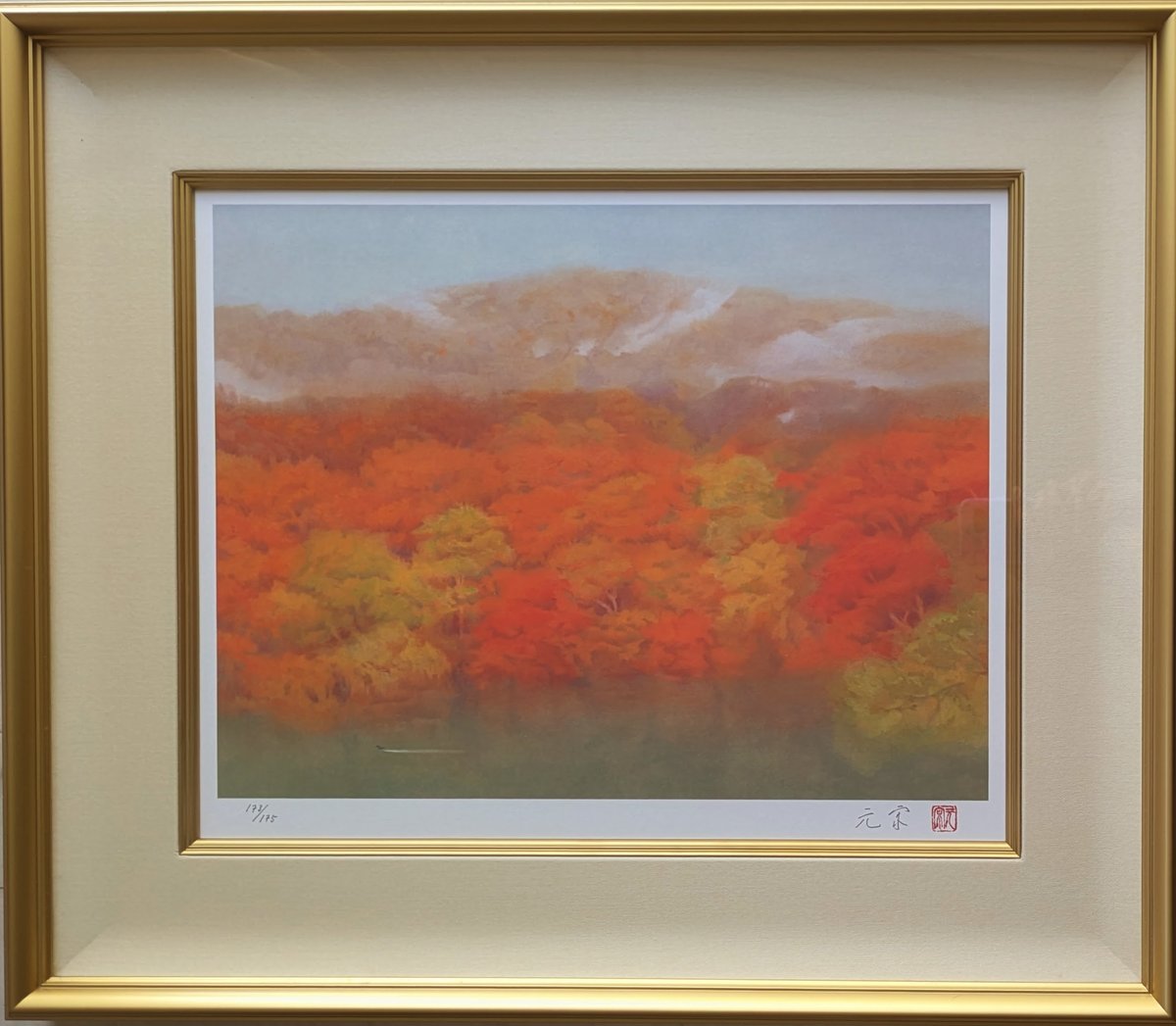 - 美術品・アンティーク・コレクション > 絵画 > 奥田 元宋、晨暉、大判、額装用・画版、日本製・新品額 額装付、状態良好 奥田元宋 版画(リトグラフ) 「霧雨の湖」 豪華・高級額装 保証書添付