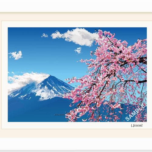 - 美術品・アンティーク・コレクション > 絵画 > 日本画 女性と山の風景 A4サイズ A4サイズ「桜と富士山」 絵画 hiroma2 通販 13243107|Creema(クリーマ)