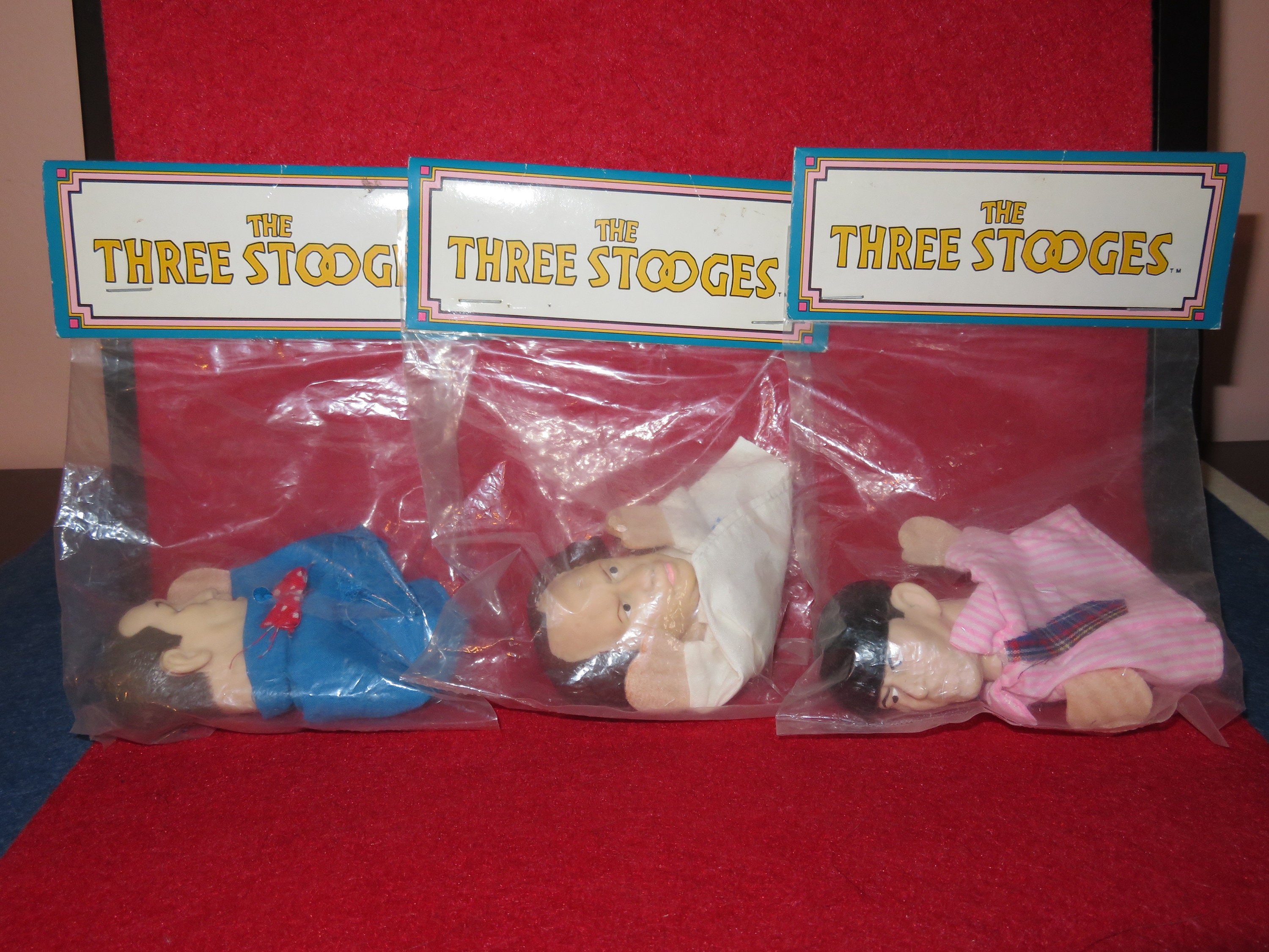 三ばか大将 The Three Stooges 指人形セット ソフビフィギュア Vintage 1991 Three Stooges Finger Puppets Set of 3 - Larry, Moe