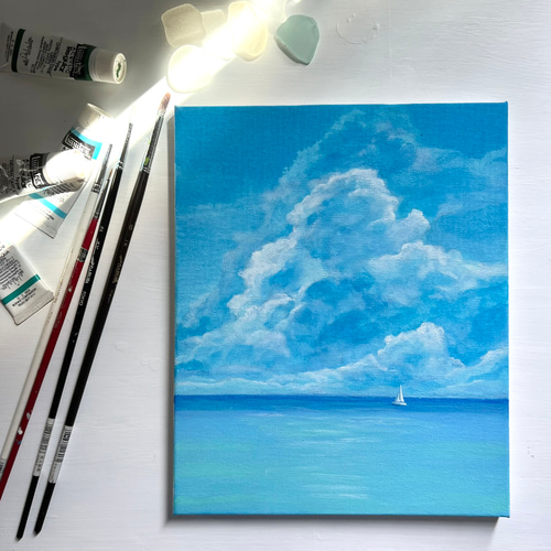 「ヘリオトロープ(ブライトブルー)」 アクリル画 SM キャンバス 原画 額なし 受注制作☆原画☆ 8月の海 アクリル絵の具 F3キャンバス 送料無料 絵画