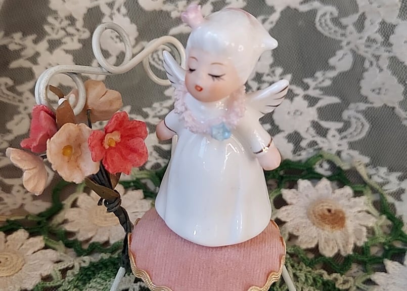 1947年頃 日本製輸出品◆磁器製 瀬戸ノベルティ CHIKUSA『白鳥と薔薇』 瀬戸ノベルティ・小さな天使 ピンク | あんちーくKIDAN STORE