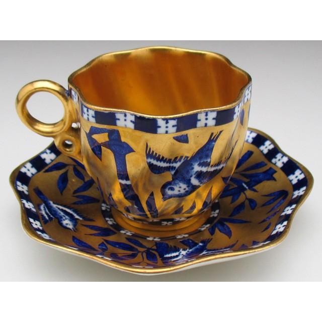 - 美術品・アンティーク・コレクション > 工芸品 > アンティーク ロイヤル・コールドン 素晴らしい カップ&ソーサー コールポート 金彩竹雀絵 カップ&ソーサー キャビネット アンティーク
