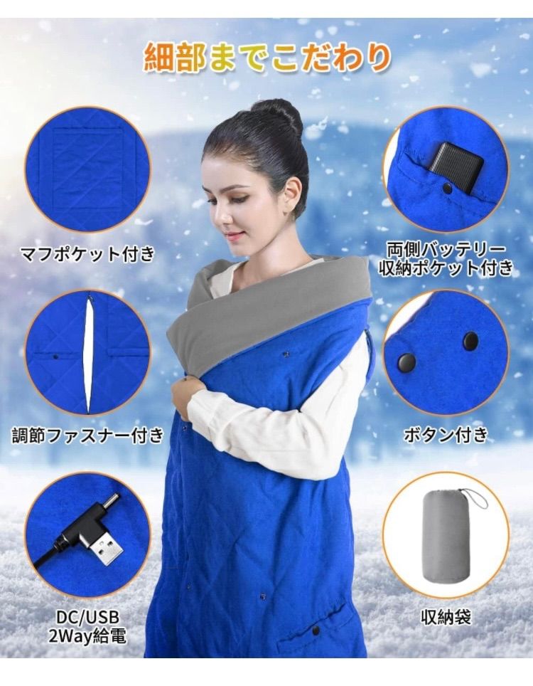 | メーカー | 快適な暖かさを手に入れよう!USB給電の5WAY即暖電気ブランケット |